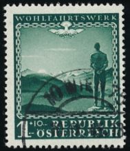 - 16 septembre : Michel 776 à 783 (Yvert n° 638 à 645) . Exposition antifasciste « Ne jamais oublier », à Vienne. L’idée provient des soviétiques dès avril 45, et l’inauguration a lieu le 14 septembre 46 en présence de représentants de tous les alliés. La vente des timbres sert à financer l’exposition, et la surcharge est destinée aux victimes du nazisme. Des anciens nazis doivent visiter l’exposition et faire tamponner une lettre. L’exposition ira aussi à Linz et Innsbruck. Tirage 800 000. Le tirage a commencé en 1945, mais 2 des 8 timbres ont été refusés par les Alliés. Les planches et les cylindres d’impression ont été détruits, mais quelques timbres se retrouvent sur le marché philatélique !! De nouvelles figurines, avec un visuel différent, sont donc imprimées (5 gr et 12 gr)