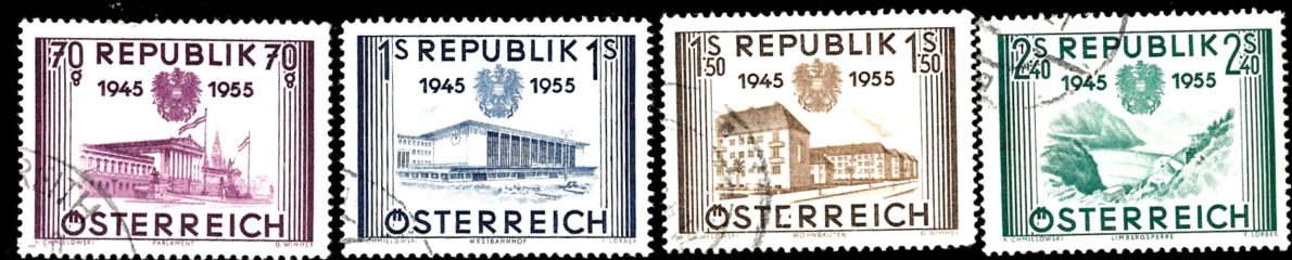 - 7 aout : Michel n° 772A à 775A (Yvert n° 634 à 637). Émis pour commémorer le 1er anniversaire du Gouvernement Renner (surtaxe pour les œuvres de bienfaisance). Tirage 450 000 (sauf 634 : 750 000)